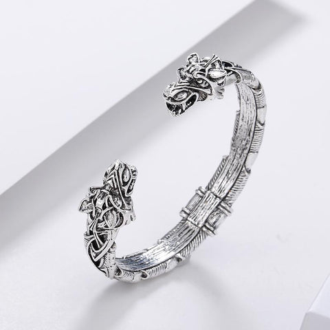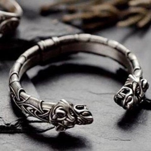 This beautiful hand-crafted Viking bracelet depicts the head of a wolf on each end. Wolves had great importance to Viking / Norse mythology, and this bracelet is representative of the monstrous wolf Fenrir who battles and slays Odin during Ragnarok (the end of the world). This style bracelet was actually worn by Viking people many centuries ago and is inspired by artifacts found on the Isle of Gotland (Sweden) and from dig sites in Iceland.